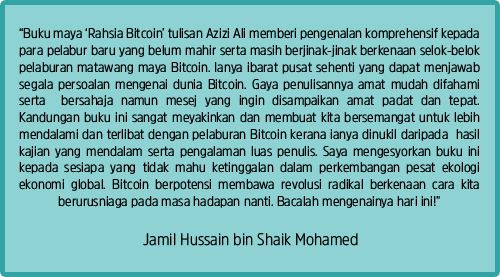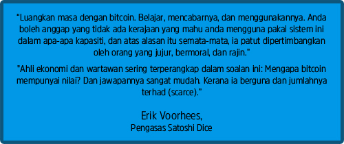 Malah saya termakan bitcoin sebagai ‘mata wang yang dicipta oleh rakyat, diterbitkan oleh rakyat, di pantau oleh rakyat dan digunakan oleh rakyat!’